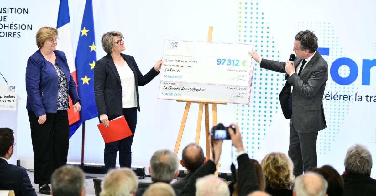 Au cours de cette rencontre, six élus locaux ont présenté leur projet financé par le Fonds vert et reçu un chèque symbolique de la part du ministre de la Transition écologique et de la Cohésion des territoires, Christophe Béchu.