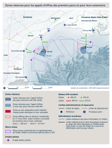 Ces zones seront intégrées au cahier des charges de la procédure de mise en concurrence en cours visant à l’attribution des deux premiers projets d’environ 250 MW d’ici l’été 2024. Ce cahier des charges sera soumis à l’avis de la Commission de régulation de l’énergie dans les semaines à venir avant d’être notifié aux candidats qui disposeront ensuite de près de 4 mois pour préparer leurs offres.