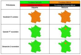 Prévisions nationales de circulation pour le troisième week-end des vacances d'automne du vendredi 31 octobre au dimanche 2 novembre 2025