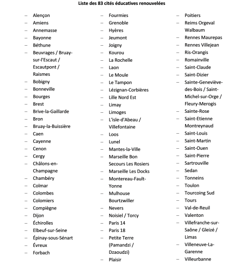 Mobilisation du Gouvernement en faveur des enfants et des jeunes des quartiers prioritaires de la politique de la ville : renouvellement du label Cités éducatives pour les 83 cités éducatives labellisées en 2022